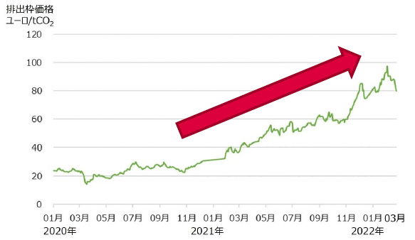 図 4 EU-ETS排出枠オークション価格の推移(2020年~2022年3月)
