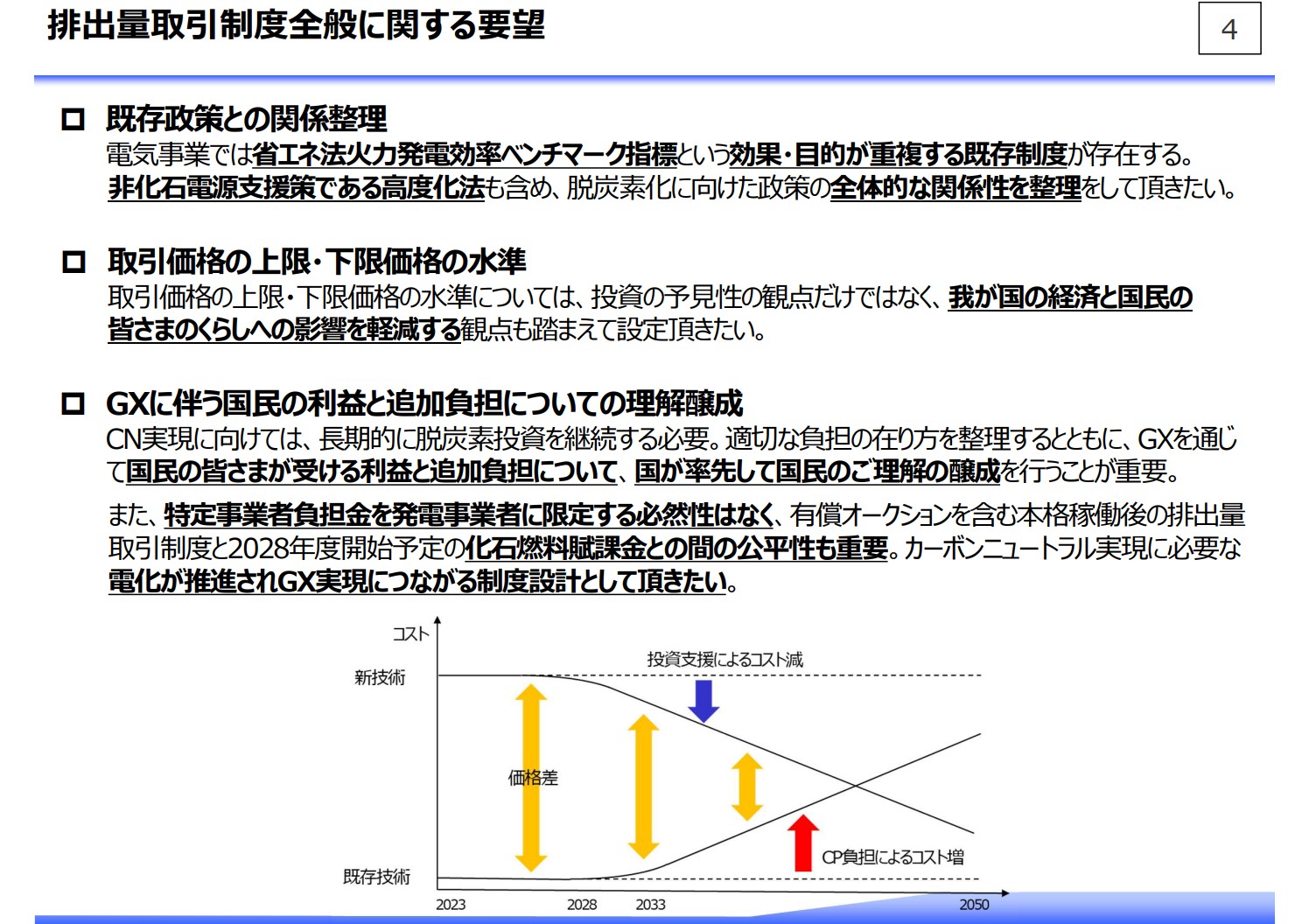 それでは、会見テーマに戻りまして、本日は、排出量取引制度、いわゆるGX-ETSの制度設計について業界としての考えを申し上げます。