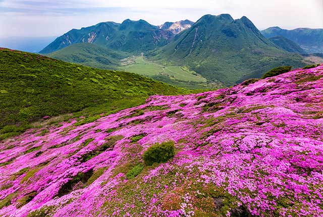 ※ 写真は、保護に取り組んでいる平治岳のミヤマキリシマ満開の様子