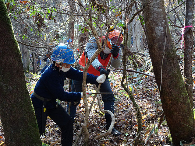 環境に配慮した行動が自発的にできる環境人財を育成し、その人財による中部地域の山林での間伐作業や次世代層への間伐指導など地域でのボランティア活動を通じて、地域の環境保全に貢献しています。
